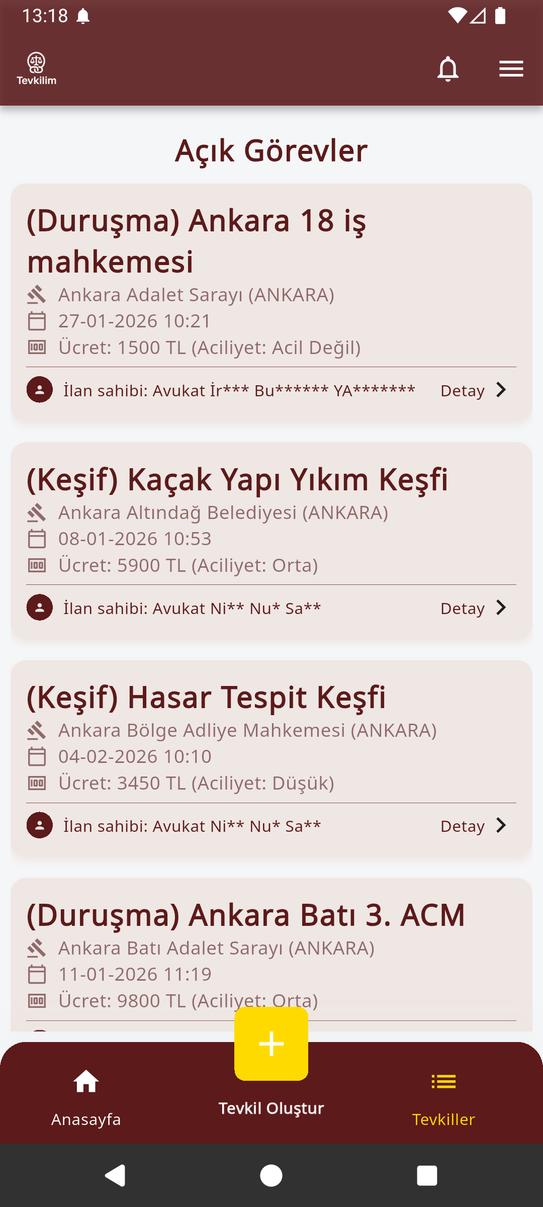Sadece ilgilendiğiniz adliyelerdeki veya uzmanlık alanınızdaki görevleri listeleyin.